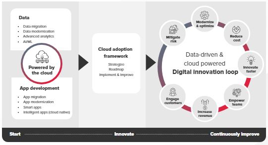 Cloud adoption is much more than virtualization of technology capabilities. Cloud is a competitive advantage. Cloud enables businesses to unlock digital innovation so that they can Innovate faster, increase revenue, reduce costs, and mitigate risk.