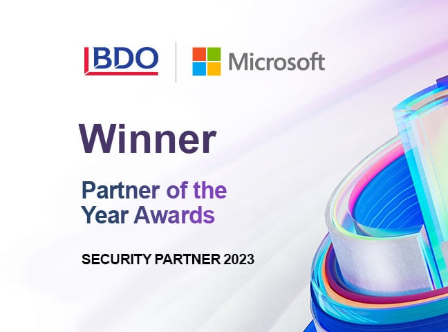 We are pleased to announce that BDO has won the 2023 Microsoft Security Partner of the Year Award. The award recognizes a partner that does an exceptional job of providing customers with end-to-end security solutions based on Microsoft security and identity capabilities in Microsoft 365 and Microsoft Azure Security.