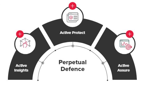 Our three-part, end-to-end Perpetual Defence security framework provides pre-emptive threat management that adapts to evolving cybersecurity risks.