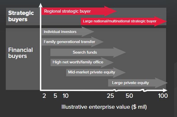 As your business matures and develops scale the applicable types of buyers begins to expand driving increased options and valuation